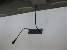 Na stolovima su ugrađeni konferencijski mikrofoni precedavajućeg i delegatski. Kada je mikrofon precedavajućeg aktivan ostali mikrofoni se gase. Isporučeni su delegatski mikrofoni sa jednim i dva mikrofona na postolju.