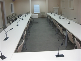 U konferencijskoj sali instaliran je i isporučen JEL konferencijski sistem u kombinaciji sa Sennheiser opremom.