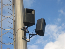 Na otvorenom bazenu postavljeni su nadgradni PVC JEL zvučnici. Po dva zvučnika postavljena su na svakom od 4 stuba oko bazena.